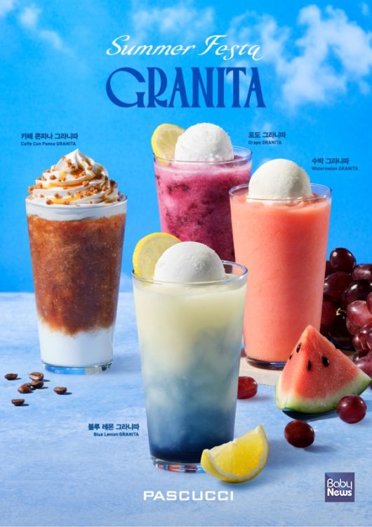 신제품은 '서머 페스타 그라니따(Summer Festa Granita)’를 콘셉트로 이탈리아의 시원한 여름 디저트를 다채로운 색과 맛으로 선보인다. 파스쿠찌의 대표 디저트인 '그라니따 (Granita)’는 이탈리아어로 '얼음을 부수다’라는 뜻으로 덥고 습한 시칠리아섬에서 유래했다. 얼음 알갱이로 이루어진 모습이 화강암(Granite)을 닮아 '그라니따’라고 불리게 됐다.