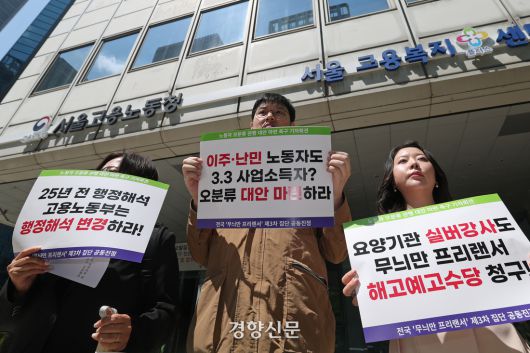 전락준 변호사는 “이들은 자신의 급여에서 3.3%가 차감되는 것이 잘못인 줄도 모르고 일을 해왔다”며 “이들은 난민 심사 중이거나 불법 체류자 신분이라 고용보험에 임의 가입조차 안 되지만 회사에서는 이들의 무지를 악용해 매번 급여를 줄 때마다 고용보험 명목으로 돈을 차감하기도 했다”고 했다.