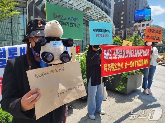 7일 서울시 중구에서 자이언트 푸바오의 팬 모임인 '푸바오 구하기 1기생' 회원들이 푸바오의 건강권 보장을 촉구하는 집회를 열고 있다. 2025.05.07/ⓒ 뉴스1 권진영 기자 |