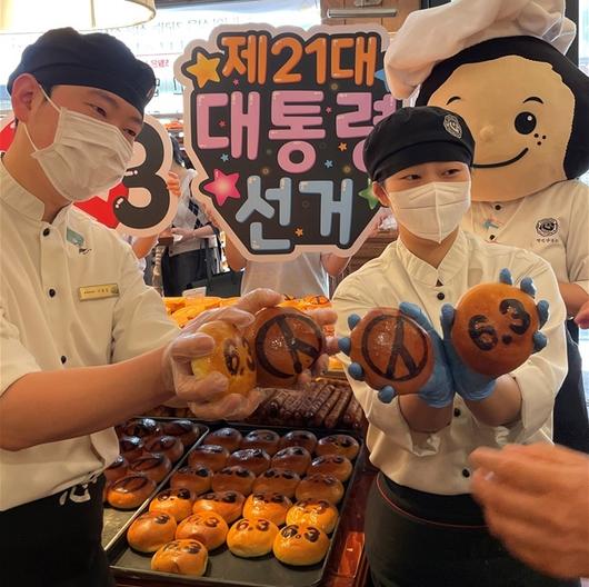 [대전=뉴스핌] 오영균 기자 = 대전시선거관리위원회는 제21대 대통령선거를 앞두고 유권자의 관심과 참여를 높이기 위해 '성심당'과 협업해 '선거빵'을 출시하고 7일 성심당 본점에서 투표참여 캠페인을 펼치고 있다. [사진=대전선관위] gyun507@newspim.com