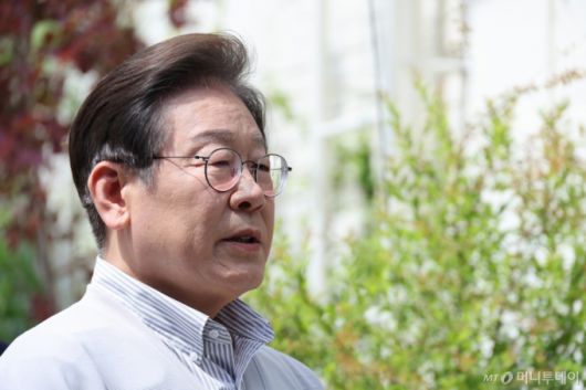 이재명 더불어민주당 대통령 후보가 2차 골목골목 경청투어 마지막 날인 7일 오후 전북 전주시의 카페 앞에서 공직선거법 위반 사건 파기환송심 첫 공판기일 연기에 대해 "법원의 합당한 결정"이라는 입장을 밝히고 있다. /사진=뉴스1 |