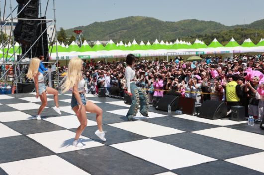 보성통합축제 기간 열린 놀고먹고즐기장 워터페스타 효린 공연 모습 |