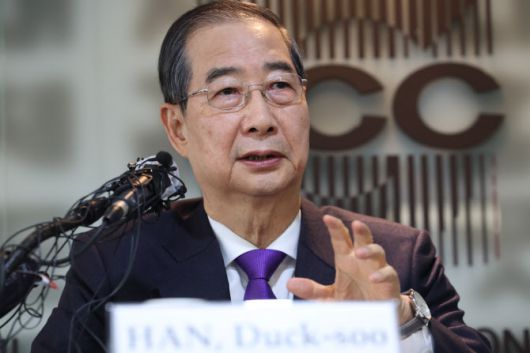 7일 서울 중구 한국프레스센터에서 열린 서울외신기자클럽 초청 기자간담회에서 한덕수 무소속 대통령 선거 예비후보가 발언하고 있다.(사진=연합뉴스) |