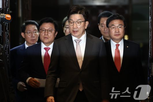 권성동 국민의힘 원내대표가 7일 오후 서울 여의도 국회에서 열린 의원총회에 참석하고 있다. 2025.5.7/뉴스1 ⓒ News1 김민지 기자 |