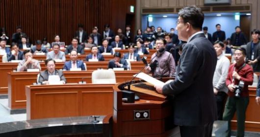 권성동 국민의힘 원내대표가 7일 국회에서 열린 의원총회에서 발언하고 있다.
