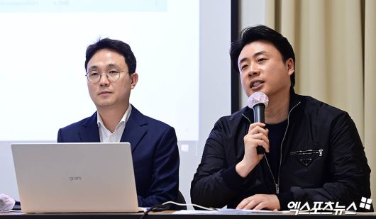 7일 오후 서울 삼성동 스페이스쉐어 삼성역센터에서 유튜브 '연예뒤통령 이진호'를 운영중인 유튜버 이진호의 긴급 기자회견이 열렸다. 기자회견에는 유튜버 이진호와 '장사의 신' 은현장이 참석해 '가세연'의 주장에 반박했다.
