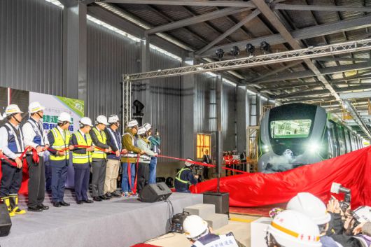 지난해 12월 대만 타오위안시에 위치한 그린라인 차량기지에서 초도 편성 도착 기념행사 모습./현대로템 |