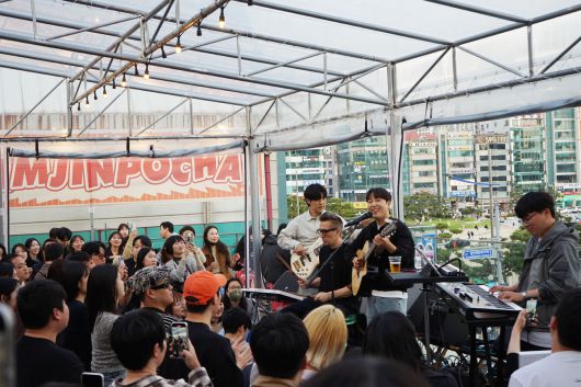 삼진어묵은 지난 2일 부산 광안리에서 운영하는 ‘삼진포차’에서 버스커버스커의 깜짝 공연이 진행됐다고 7일 밝혔다. 삼진어묵 제공 |