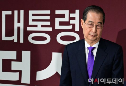 아시아투데이 이병화 기자 = 한덕수 무소속 대선 예비후보가 7일 서울 여의도 맨하탄21빌딩에 마련된 선거 사무소에서 긴급 입장 발표를 마친 뒤 회견장을 나서고 있다.