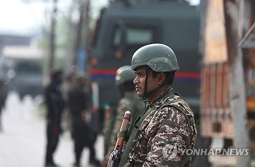 7일 인도령 카슈미르의 주요 도시인 스리나가르 인근서 순찰중인 인도 보안군 |