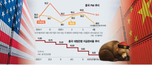 특히 최근 들어 주요 지표에서 경고음이 울리기 시작했다. 지난달 30일 중국 국가통계국은 4월 제조업 구매관리자지수(PMI)가 전월(50.5)보다 1.5포인트 하락한 49로 집계됐다고 밝혔다. 16개월 만에 최대치로 하락하며 경기 위축 국면에 접어들었다는 우려가 나왔다. 실제로 최근 저장성·장쑤성·광둥성 등 중국의 주요 수출 지역에서는 미국발 주문이 거의 ‘제로’에 가까워지면서 상당수 공장이 강제 휴업에 들어갔다. 중국은 경기 침체와 고용 부진 속에 미중 무역 갈등이라는 악재까지 겹치며 고용시장에 타격을 입고 있다. 국가통계국에 따르면 올해 3월 도시 지역 16~24세 청년 실업률은 16.5%로 3개월 연속 16%를 넘겼다. 골드만삭스는 최근 보고서에서 “미중 간 고율 관세가 장기화되고 중국 수출이 줄어들 경우 대미 수출 관련 일자리 최대 1600만 개가 위협받을 수 있다”고 경고했다. 중국 당국이 서둘러 지준율 인하 등을 통한 유동성 공급에 나선 배경이다.