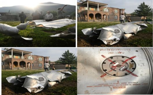 7일 인도령 카슈미르 지역에서 전투기 잔해로 추정되는 금속 파편이 널브러져 있다. 출처=소셜미디어 |
