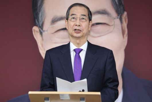 7일 서울 영등포구 선거캠프 사무실에서 열린 기자회견에서 한덕수 무소속 대통령 선거 예비후보가 발언하고 있다.(사진=연합뉴스) |