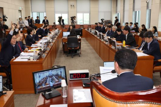 7일 국회 행정안전위원회에서 위원들이 공직선거법 개정안 상정을 앞두고 의사일정 변경 동의의 건에 대해 거수표결하고 있다.(사진=연합뉴스) |