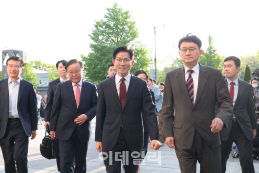 [포토]한덕수와 단일화 위해 회동장소로 이동하는 김문수