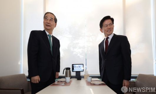 [서울=뉴스핌] 윤창빈 기자 = 국민의힘 김문수 대선후보와 무소속 한덕수 대선 예비후보가 7일 서울 종로구의 한 식당에서 후보 단일화 관련 회동을 하고 있다. 2025.05.07 pangbin@newspim.com 저작권자(c) 글로벌리더의 지름길 종합뉴스통신사 뉴스핌(Newspim), 무단 전재-재배포 금지