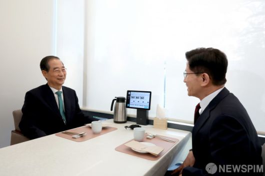 [서울=뉴스핌] 윤창빈 기자 = 김문수 국민의힘 대선 후보와 한덕수 무소속 예비후보가 7일 오후 서울 종로구의 한 식당에서 단일화 관련 회동을 하고 있다. 2025.05.07 pangbin@newspim.com 저작권자(c) 글로벌리더의 지름길 종합뉴스통신사 뉴스핌(Newspim), 무단 전재-재배포 금지