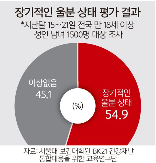 서울대 보건대학원 건강재난 통합대응을 위한 교육연구단은 설문조사 업체인 케이스탯리서치를 통해 전국 만 18세 이상 성인 남녀 1500명 대상으로 수행한 정신건강 증진 관련 조사결과를 7일 공개했다.