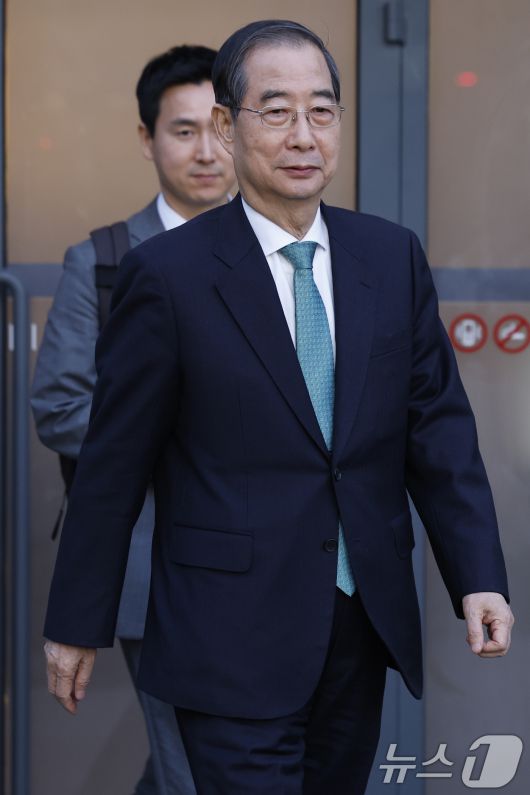 (서울=뉴스1) 오대일 기자 = 한덕수 무소속 대선 예비후보가 7일 서울 종로구의 한 음식점에서 김문수 국민의힘 대선 후보와 후보 단일화 관련 회동을 마친 후 식당을 나서고 있다. (공동취재) 2025.5.7/뉴스1