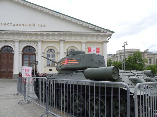 러시아 모스크바 붉은광장 인근 마네지 광장에 전승절 80주년을 기념해 전시된 T-34 탱크의 모습. [연합뉴스] |