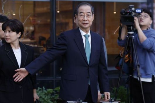 한덕수 무소속 대선 예비후보가 7일 서울 종로구의 한 식당에서 김문수 국민의힘 대선후보와 후보 단일화 관련 회동을 마친 후 식당을 나서고 있다. <ⓒ투자가를 위한 경제콘텐츠 플랫폼, 아시아경제(www.asiae.co.kr) 무단전재 배포금지>