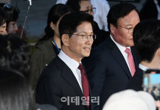 [이데일리 방인권 기자] 김문수 국민의힘 대선후보가 7일 서울 종로구의 한 식당에서 한덕수 무소속 대선 예비후보와 후보 단일화 관련 회동을 마친 후 이동하고 있다.