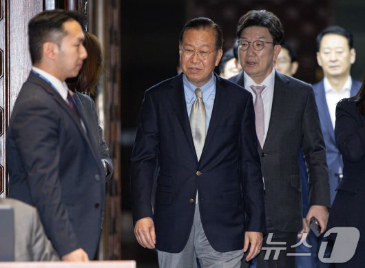 (서울=뉴스1) 이재명 기자 = 권영세 국민의힘 비상대책위원장과 권성동 원내대표가 7일 오후 서울 여의도 국회에서 열린 의원총회에 참석하고 있다. 2025.5.7/뉴스12expulsion@news1.krCopyright ⓒ 뉴스1. All rights reserved. 무단 전재 및 재배포, AI학습 이용 금지.