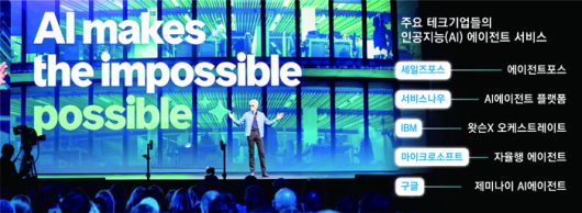 지난해부터 기업용 소프트웨어를 만드는 주요 테크기업들은 ‘AI에이전트’를 전략의 중심에 두고 있다. 기업 간 거래(B2B) 소프트웨어로 유명한 세일즈포스는 지난해 9월 ‘에이전트포스’를 공개했고 마이크로소프트도 다양한 기업 업무에 걸맞은 AI에이전트를 애저 클라우드를 통해 서비스하고 있다.