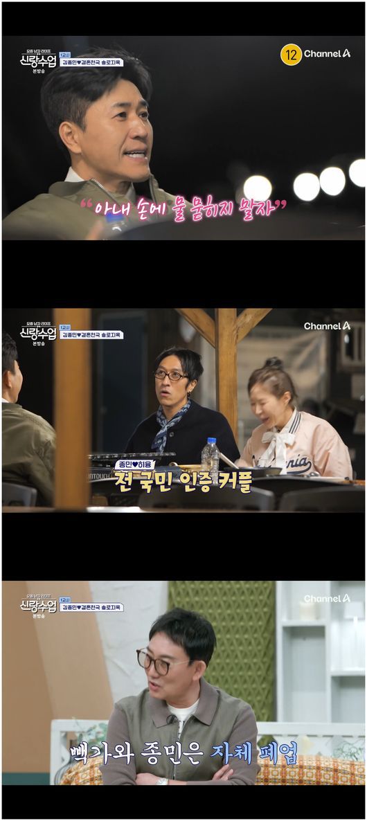 7일 방영한 채널A 예능 '요즘 남자 라이프 신랑수업'(이하 '신랑수업')에서는 11살 연하 신부 히융과 얼마 전 결혼을 한 코요태 김종민이 등장했다.