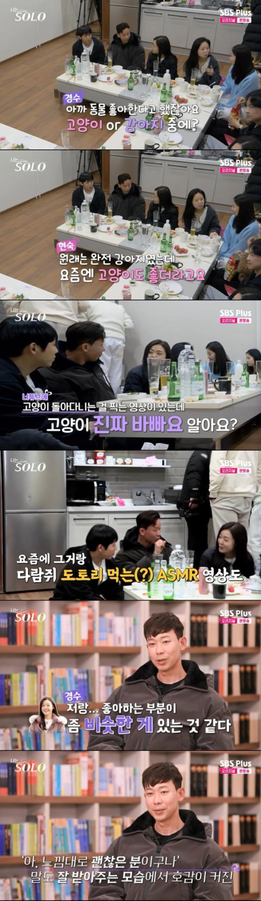 7일 방송한 SBS Plus·ENA 리얼 데이팅 프로그램 ‘나는 SOLO’에서 26기 경수는 현숙에게 고양이와 강아지 중에 어떤 동물이 더 좋냐고 물었다.