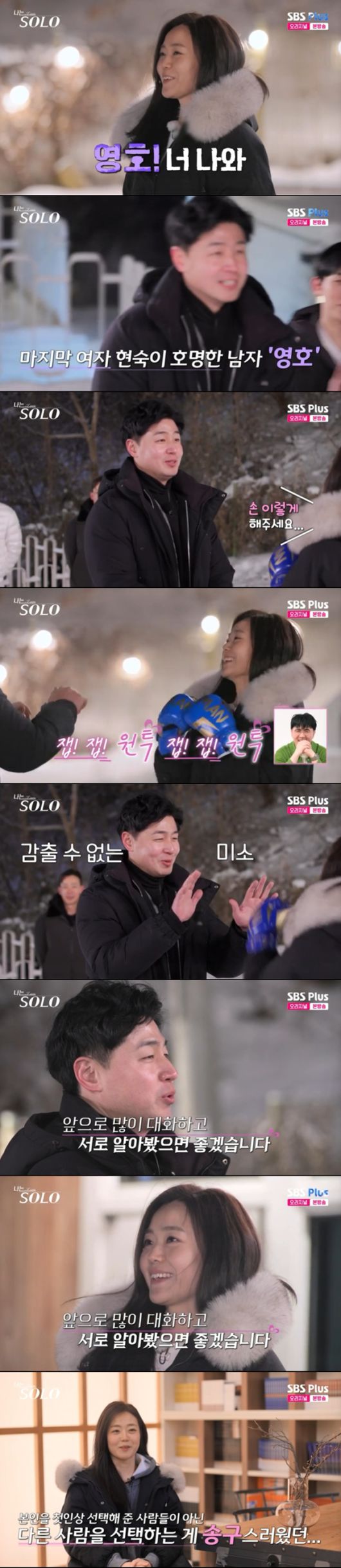 첫인상 선택에서 0표를 받은 순자의 선택도 영호였다. 순자는 "영호님은 (첫인상 선택 때) 멘트가 좋아서 호감이 생겼다. 혼자만 다른 멘트를 했다. 편한 느낌이고 인상이 좋다. 착하게 생겼다"라며 그를 선택한 이유를 밝혔다.