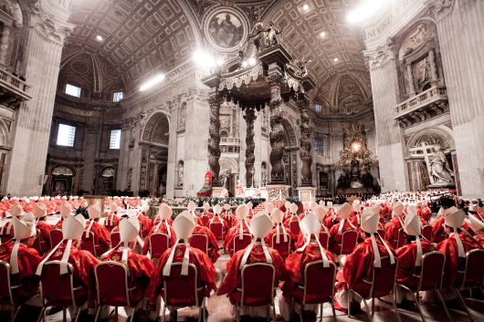 새 교황을 뽑는 추기경단의 비공개 투표 콘클라베가 바티칸 시스티나 성당에서 7일(현지 시각) 시작된다. 전 세계 80세 미만 추기경이 바티칸에 모여 3분의 2 이상 득표하는 인물이 나올 때까지 투표를 거듭한다. 사진은 프란치스코 교황이 선출된 2013년 3월 콘클라베에 앞서 추기경들이 성 베드로 대성당에서 미사를 올리는 모습./게티이미지코리아 |