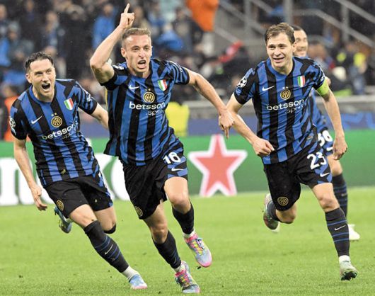 지난 1일 1차전에서 난타전 끝에 3대3으로 비겼던 두 팀은 이날도 득점 쇼를 이어갔다. 선제골을 터뜨린 쪽은 홈팀 인테르. 라우타로 마르티네스(28·아르헨티나)가 전반 21분 골문을 갈랐다. 전방 압박으로 끊어낸 공을 덴절 뒴프리스(29·네덜란드)가 연결했고, 마르티네스가 침착하게 오른발 슈팅으로 마무리했다. 전반 42분에는 마르티네스가 파우 쿠바르시(18·스페인)의 태클에 넘어지며 페널티킥을 얻어냈고, 4분 뒤 하칸 찰하노을루(31·튀르키예)가 이를 성공, 인테르는 2-0으로 달아났다.