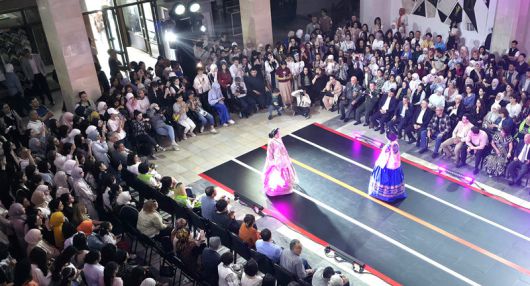 지난달 21일 우즈베키스탄 타슈켄트 국립예술학술원에서 열린 ‘국제 순수 및 응용 미술 축제’ 개막 기념 패션쇼에서 계명대 패션디자인과 학생들이 한복 작품을 선보이고 있다. 계명대 제공 |