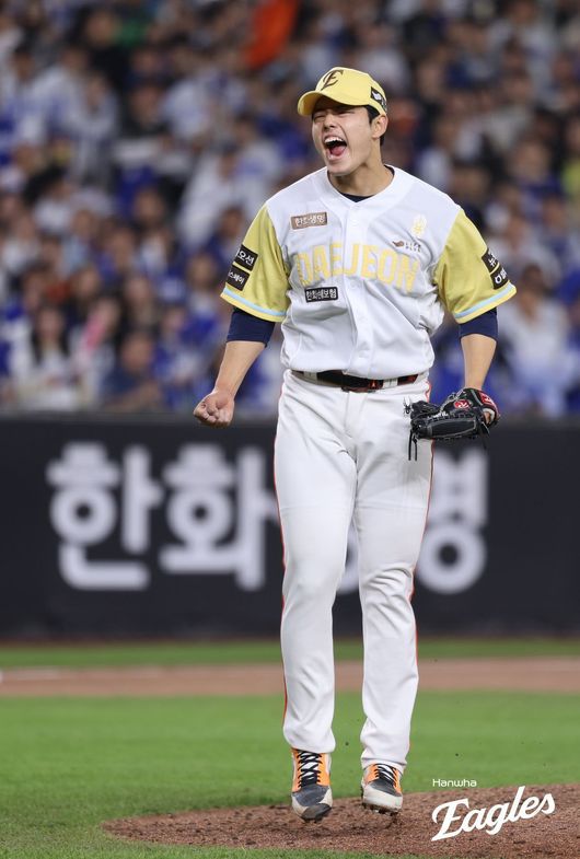 이날 문동주의 승리는 불펜이 지켜주면서 완성됐다. 특히 7회 1사 1,2루 위기에 나와 르윈 디아즈를 중견수 뜬공, 대타 박병호를 헛스윙 삼진 잡고 위기를 정리한 김범수의 1⅔이닝 무실점 홀드가 결정적이었다. 7회 위기를 넘긴 뒤 김범수의 시원한 포효에 대해 문동주는 “범수 형이 항상 제 뒤를 잘 막아주신다. 동생 아끼는 것을 몸소 보여주셨다. 항상 투덜투덜대는 형이지만 동생을 좋아하고 사랑하는 마음을 눈으로 확인했다”며 고마워했다.