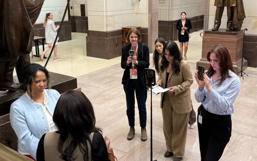 7일 미국 의회에서 열린 민주당 정책소통위원회(DPCC) '미디어 로우' 행사에서 크리에이터들이 재스민 크로켓 민주당 하원의원의 발언을 촬영하고 있다. /워싱턴=김은중 특파원 |