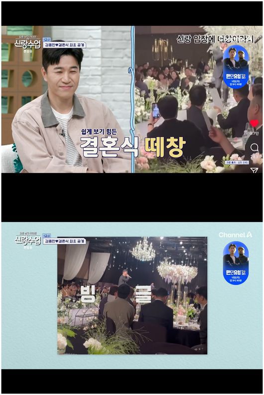 실제로 유재석, 동방신기, 이적, 이효리 등이 하객으로 등장했던 김종민의 결혼식은 호텔에서 치러져 시선을 더욱 모았다. 장우혁은 “축의금이 궁금하다. 적자인지, 흑자인지”라고 물었다. 김종민은 “적자가 났다”라며 솔직히 말했다. 그러자 문세윤은 “그래서 밤마다 행사 다닐 거냐”라고 물어 웃음을 안겼다.