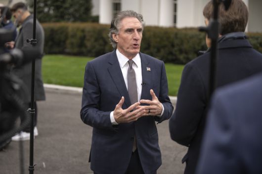 더그 버검 미국 내무부 장관이 지난달 10일(현지시간) 워싱턴 DC 백악관에서 취재진과 대화하고 있다. AP=연합뉴스 |