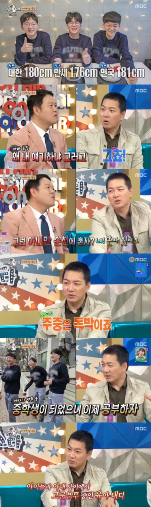 (엑스포츠뉴스 오수정 기자) '라디오스타'에서 송일국이 '삼둥이' 대한, 민국, 만세의 어마어마했던 인기를 회상했다.