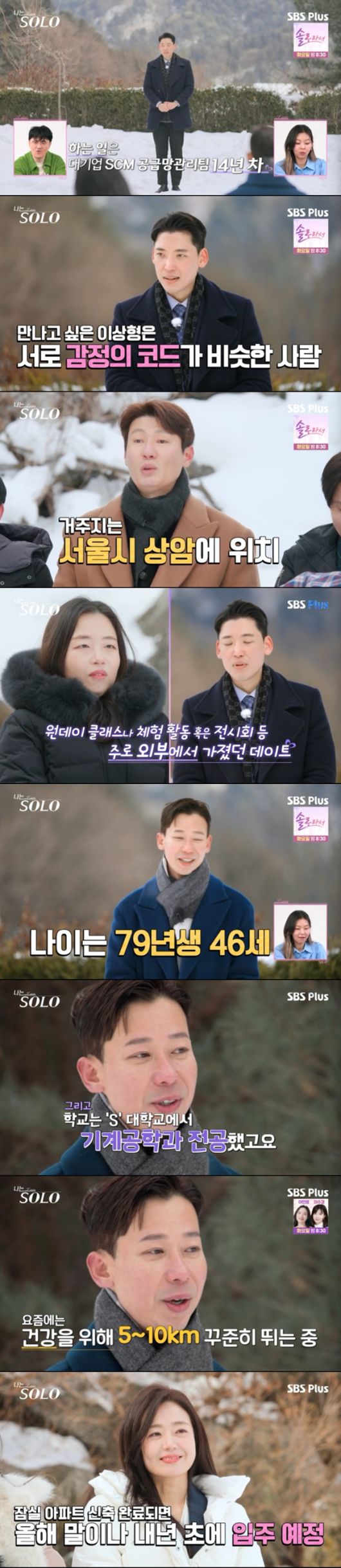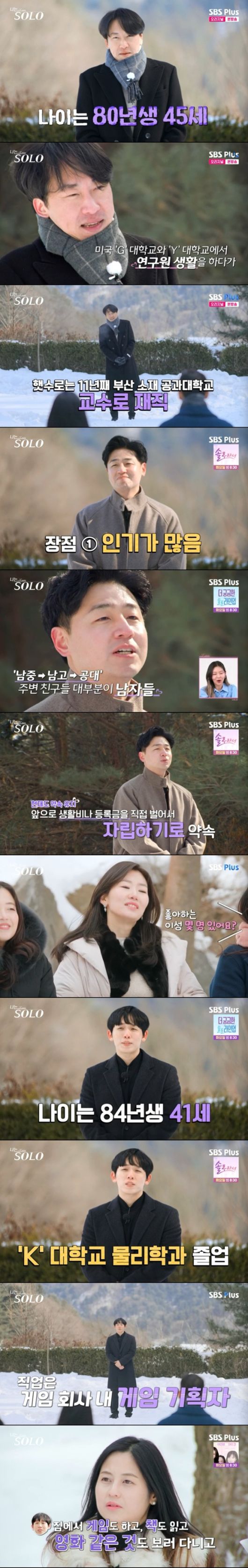 7일 방송한 SBS Plus·ENA 리얼 데이팅 프로그램 ‘나는 SOLO’에서는 26기 출연자들의 자기소개가 담겼다.