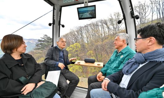 이어 "곤돌라가 유지된다고 하니 노약자, 장애인들, 걸어서 여길 올라올 수 없는 많은 분들이 정상까지 와서 이 자연을 감상할 수 있게, 훼손될 우려도 있으니까 나름대로 운용의 묘를 잘 살려서 예약도 받아보고 해설사들이 좀 잘 유도도 하고 그러면서 자연도 즐기고 또 시간이 가면 갈수록 많은 사람들한테 기억에 남는 그런 장소가 되게 만들었으면 좋겠다"고 바랐다.