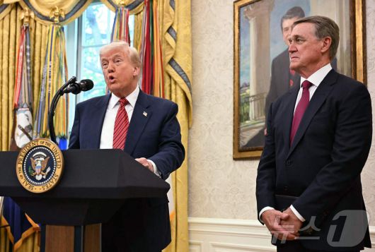 (워싱턴 AFP=뉴스1) 우동명 기자 = 도널드 트럼프 도널드 트럼프 미국 대통령이 7일(현지시간) 워싱턴 백악관에서 열린 데이비드 퍼듀 주중대사 선서식 행사에 참석해 연설을 하고 있다. 2025.05.08 ⓒ AFP=뉴스1 Copyright ⓒ 뉴스1. All rights reserved. 무단 전재 및 재배포, AI학습 이용 금지.
