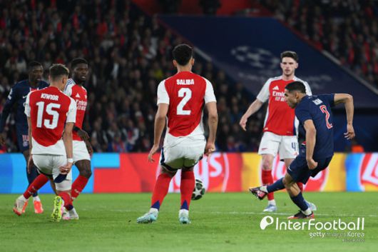 아스널 쪽으로 분위기가 넘어갈 수 있는 상황이었으나 PSG가 승기를 잡았다. 주인공은 하키미였다. 후반 27분 페널티 박스 안에서 우스만 뎀벨레의 패스를 받아 감아 찬 슈팅이 그대로 아스널 골문으로 빨려 들어갔다.