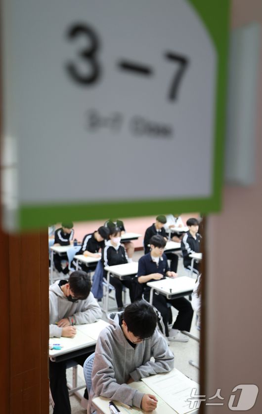 (화성=뉴스1) 김영운 기자 = 8일 오전 경기 화성시 동탄고등학교에서 3학년 학생들이 2025년 5월 전국연합학력평가를 치르고 있다. 2025.5.8/뉴스1kkyu6103@news1.krCopyright ⓒ 뉴스1. All rights reserved. 무단 전재 및 재배포, AI학습 이용 금지.