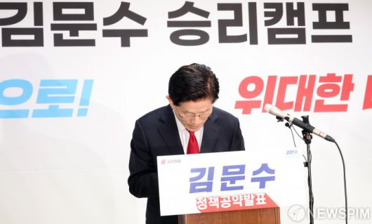 [서울=뉴스핌] 정일구 기자 = 김문수 국민의힘 대선 후보가 8일 오전 서울 여의도 선거캠프에서 후보 단일화 관련 긴급 기자회견을 마친 뒤 인사하고 있다. 2025.05.08 mironj19@newspim.com |