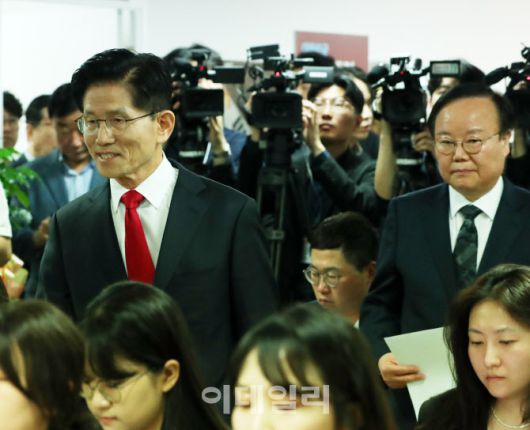 [이데일리 김태형 기자] 국민의힘 김문수 대선 후보가 8일 오전 서울 여의도 대하빌딩 선거 캠프 사무실에서 후보 단일화에 관한 입장을 밝히는 긴급 기자회견을 위해 입장하고 있다.