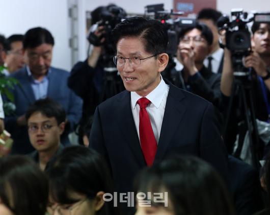 [이데일리 김태형 기자] 국민의힘 김문수 대선 후보가 8일 오전 서울 여의도 대하빌딩 선거 캠프 사무실에서 후보 단일화에 관한 입장을 밝히는 긴급 기자회견을 위해 입장하고 있다.