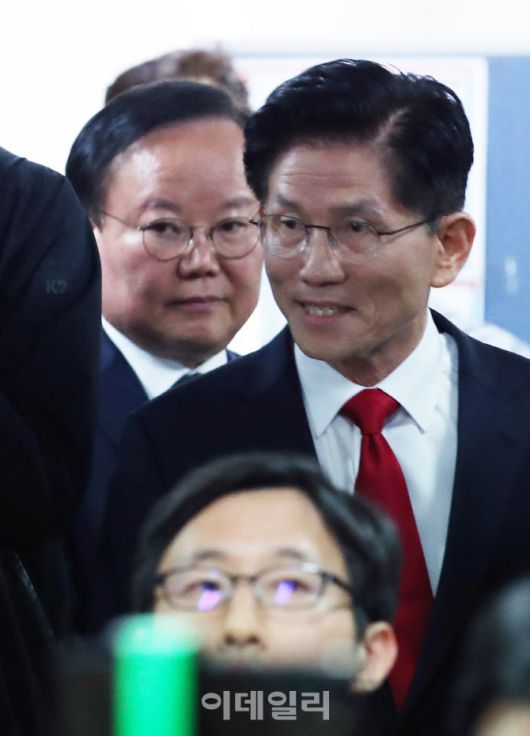 [이데일리 김태형 기자] 국민의힘 김문수 대선 후보가 8일 오전 서울 여의도 대하빌딩 선거 캠프 사무실에서 후보 단일화에 관한 입장을 밝히는 긴급 기자회견을 위해 입장하고 있다.