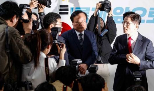 김문수 국민의힘 대선후보가 8일 서울 여의도 선거캠프에서 긴급 기자회견을 마친 뒤 이동하고 있다. <ⓒ투자가를 위한 경제콘텐츠 플랫폼, 아시아경제(www.asiae.co.kr) 무단전재 배포금지>