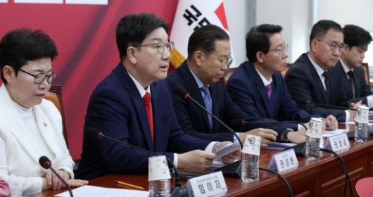 권성동 국민의힘 원내대표가 8일 국회에서 열린 비상대책위원회의에서 발언하고 있다.